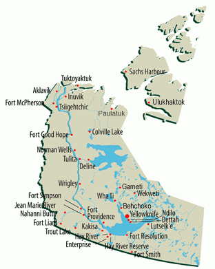 Nos Territoires occupent une superficie de 1,17 million de kilomètres carrés; avec notre voisin, le Nunavut, nous occupons le tiers du Canada. Les Territoires du Nord-Ouest comptent, depuis la création du Nunavut en 1999, 41 464 habitants (selon le recensement effectué en 2006 par le Bureau de la statistique des TNO). Plus de la moitié de la population vit dans l’une des 33 collectivités alors que le reste habite la seule ville, également la capitale des TNO, Yellowknife. Notre territoire est dirigé par un gouvernement de consensus qui siège dans le très bel édifice de l’Assemblée législative, dans la capitale.
