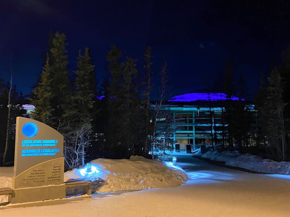 Le bâtiment dispose d'un système d'éclairage externe qui permet aux dômes du bâtiment d'être éclairés en une seule couleur (y compris l'occultation) ou en plusieurs couleurs (aurores boréales). Cet éclairage contribue non seulement à mettre en valeur les caractéristiques architecturales du bâtiment, mais peut également aider l’Assemblée législative à participer aux célébrations et aux commémorations dans la communauté au sens large, à renforcer l’engagement du public et à promouvoir les Territoires du Nord-Ouest.