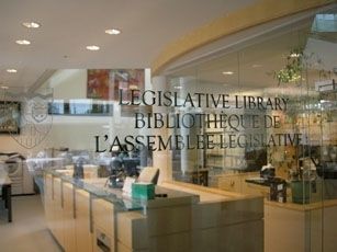 La bibliothèque de l’Assemblée législative est située au rez-de-chaussée de l’édifice.